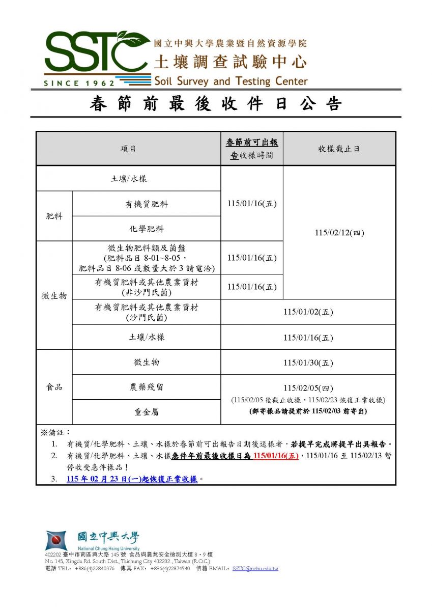 115年春節年前送樣日說明